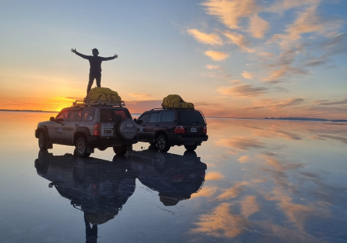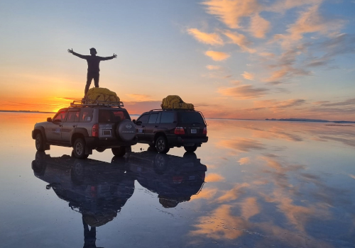 Disfruta de un día mágico en el Salar de Uyuni con un atardecer inolvidable.